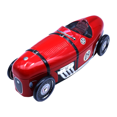 En este coche de carreras nunca llegarás tarde, pero vete con cuidado no te vayan a poner una multa de velocidad. Reutiliza esta lata para guardar tus cosas preferidas, o para adornar un estante de tu salón.